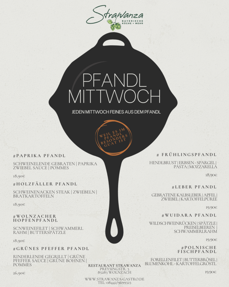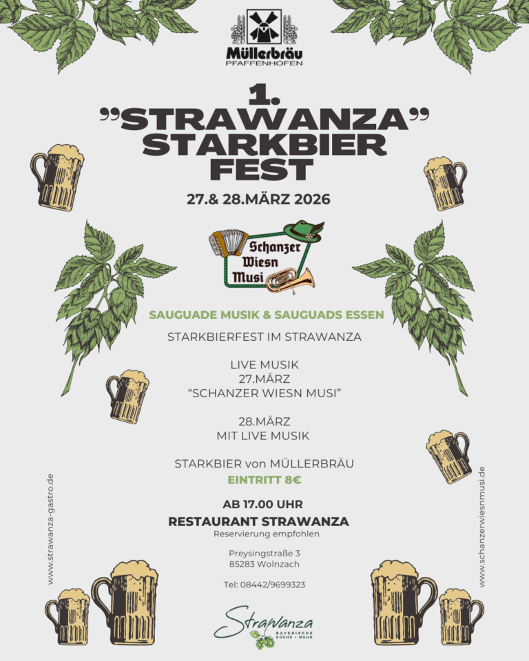 Willkommen bei uns im Restaurant Strawanza, mitten im Herzen von Wolnzach! Seit Dezember 2024 bringt ein junges Team frischen Wind in die bayerische Küche. Mit regionalen Zutaten aus der Hallertau und kreativen Einflüssen aus aller Welt – besonders aus Asien – entstehen bei uns überraschende Geschmackserlebnisse. In modern-gemütlichem Ambiente laden wir euch ein, bayerische Klassiker neu zu entdecken und euch rundum wohlzufühlen.